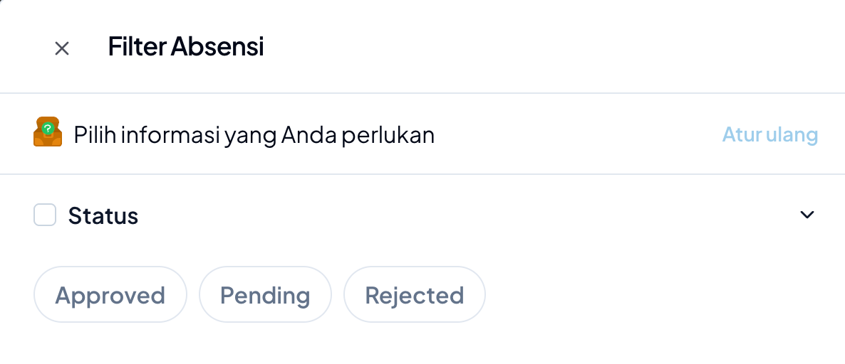- Status Absen (Approved, Pending, Rejected)