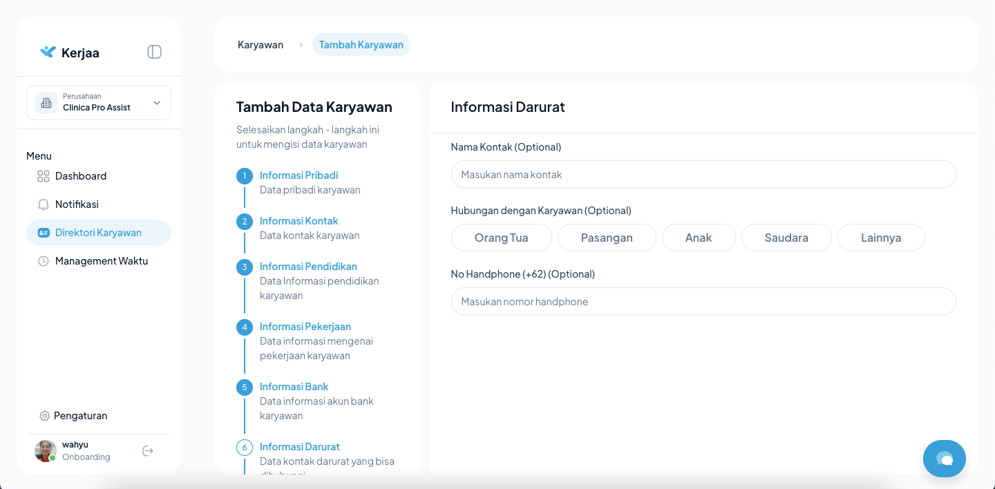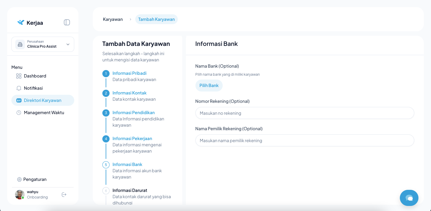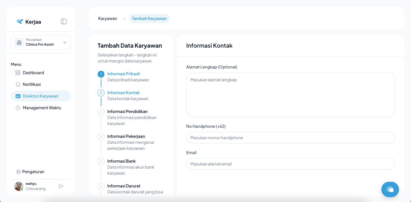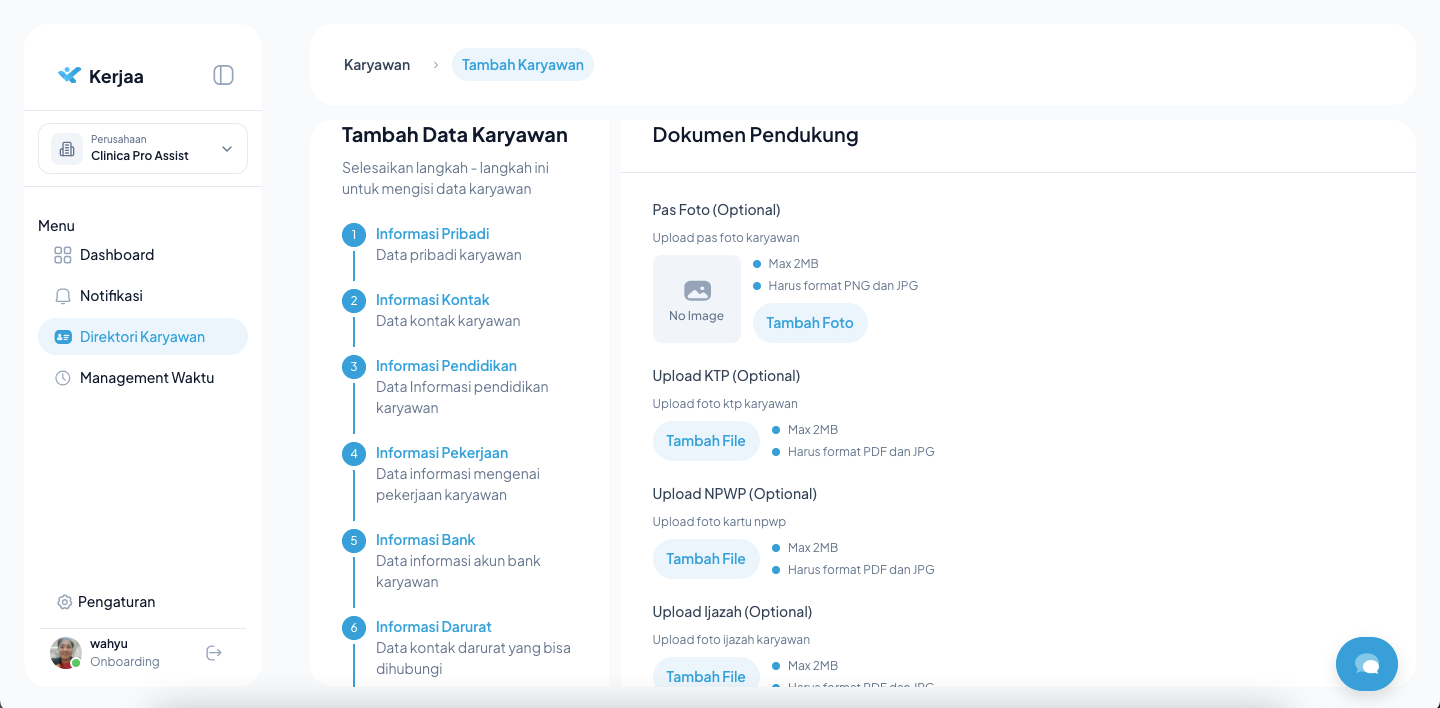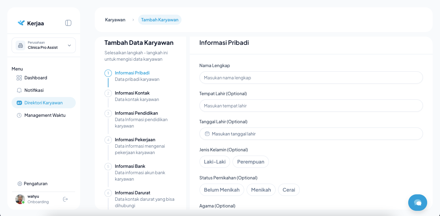 Berikut adalah langkah-langkah untuk melengkapi data karyawan pada sistem Kerjaa.id: