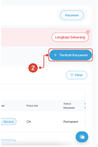 - Lalu silakan kllik tombol + Tambah Karyawan.