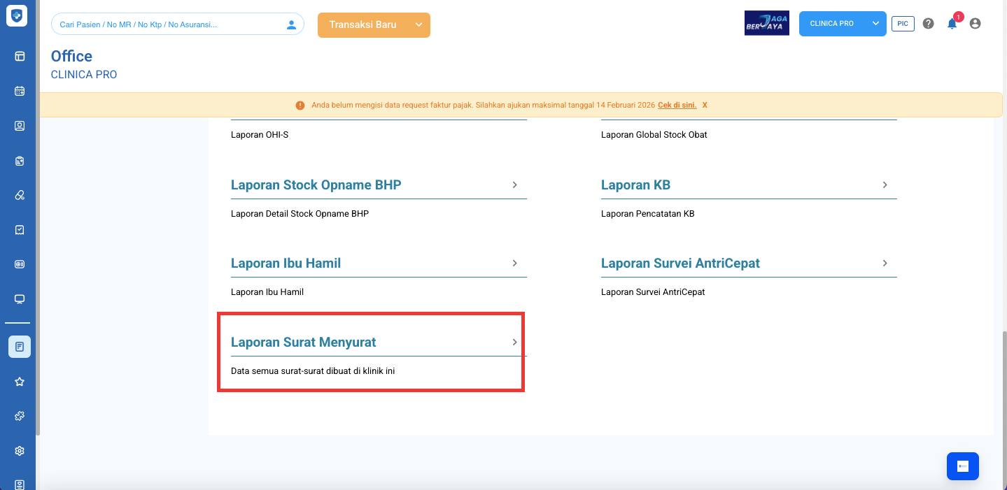 Berikut langkah untuk cek Laporan Surat Menyurat: