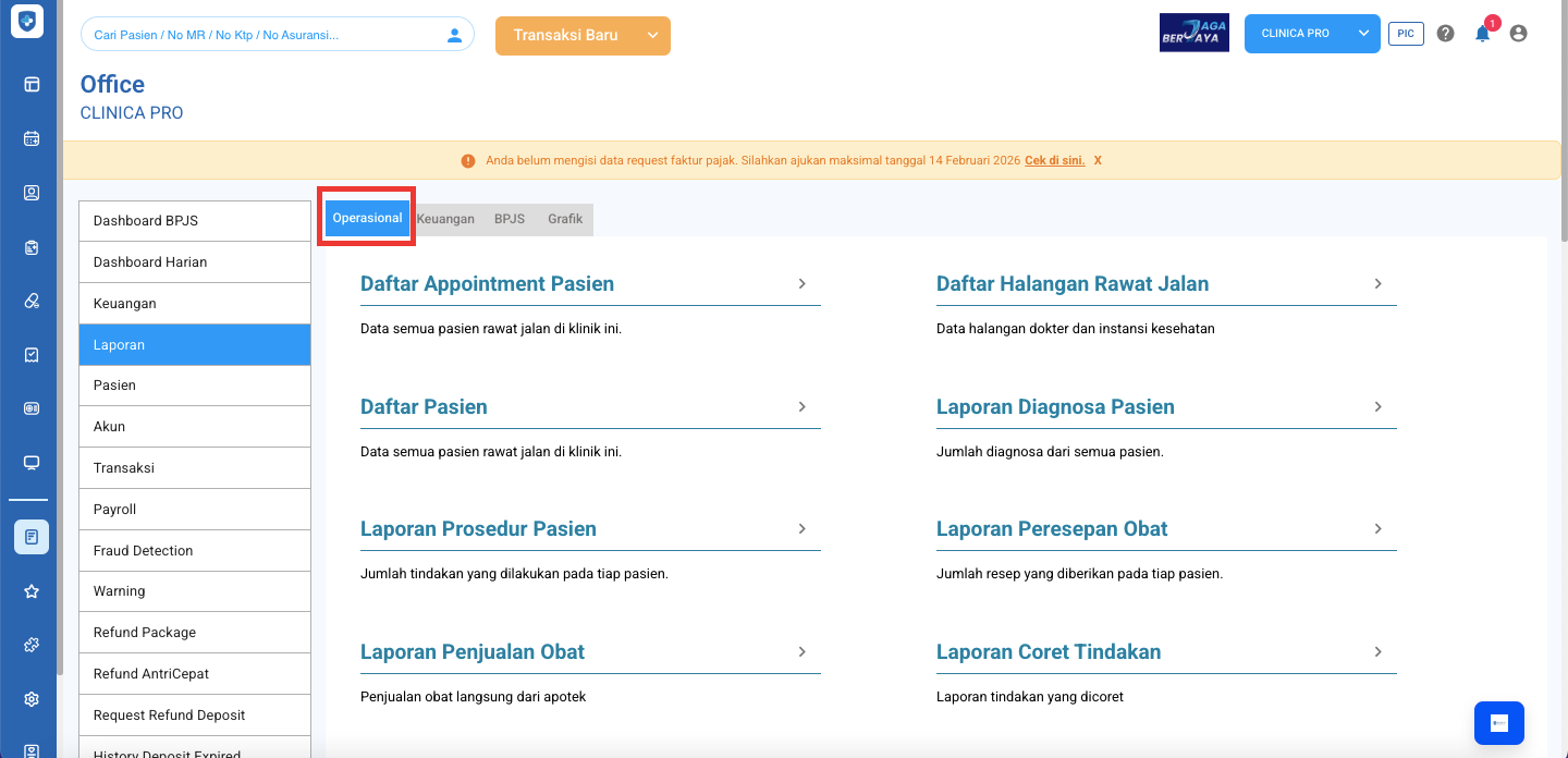 3. Selanjutnya Klik Operasional