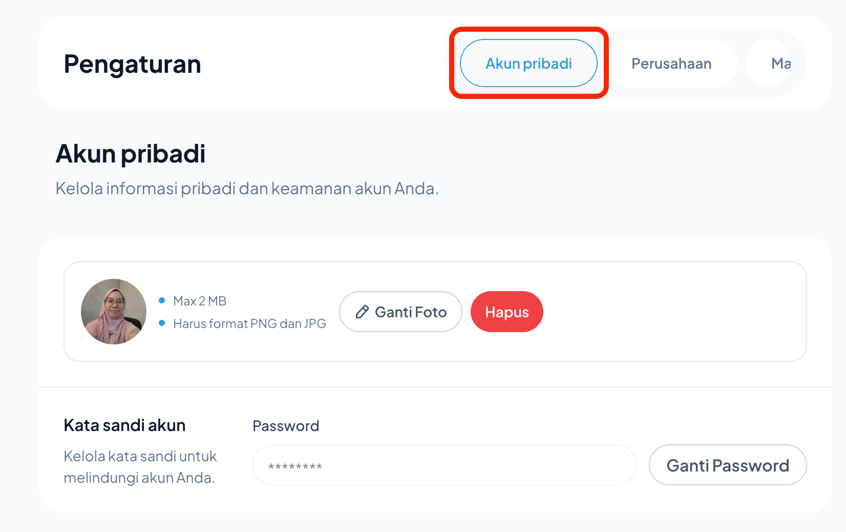 Untuk mengatur Data Akun Pribadi seperti Foto Profil dan Password Akun di sistem Kerjaa.id, silakan ikuti langkah-langkah berikut: