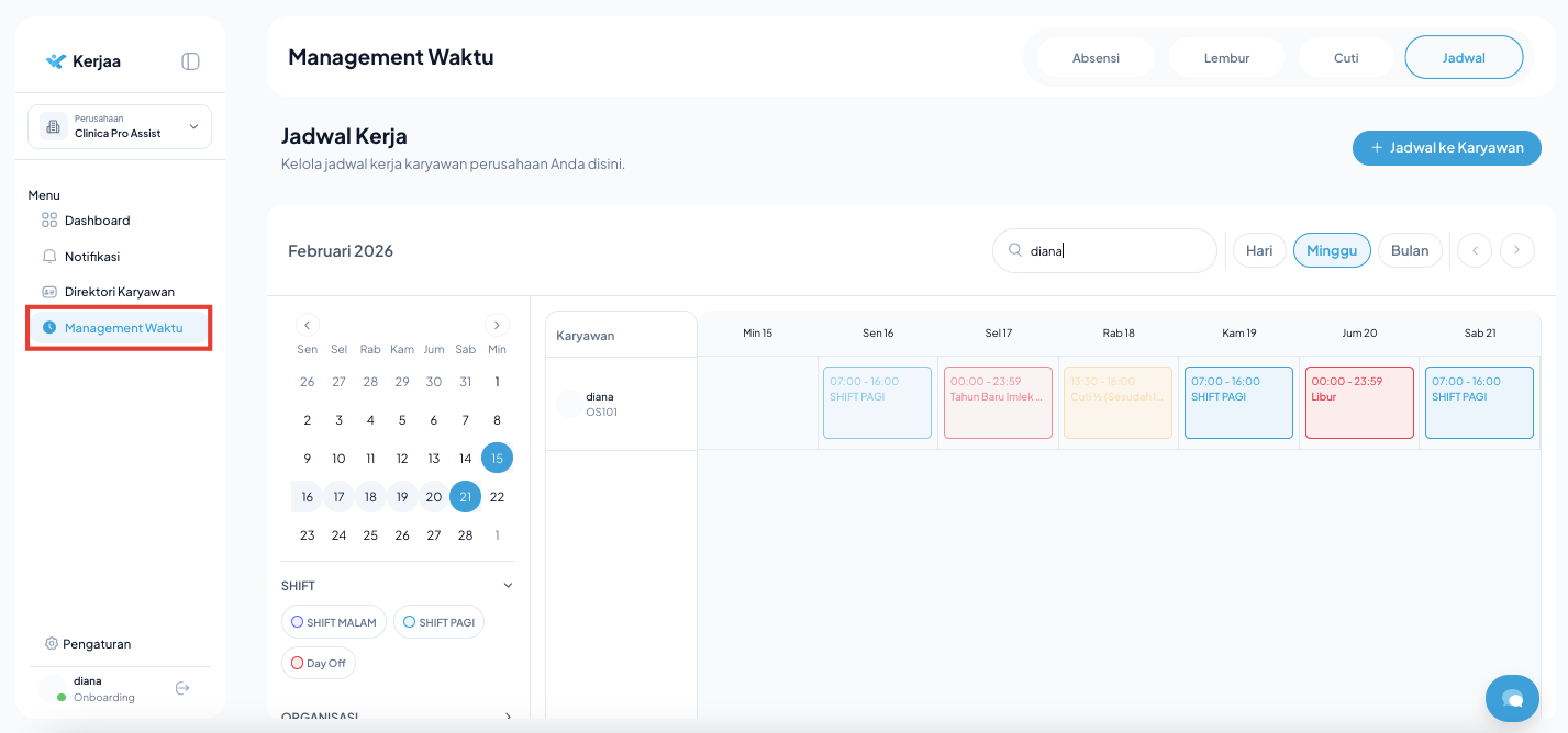 Pastikan perubahan sudah tersimpan dan shift terbaru tampil pada jadwal karyawan.