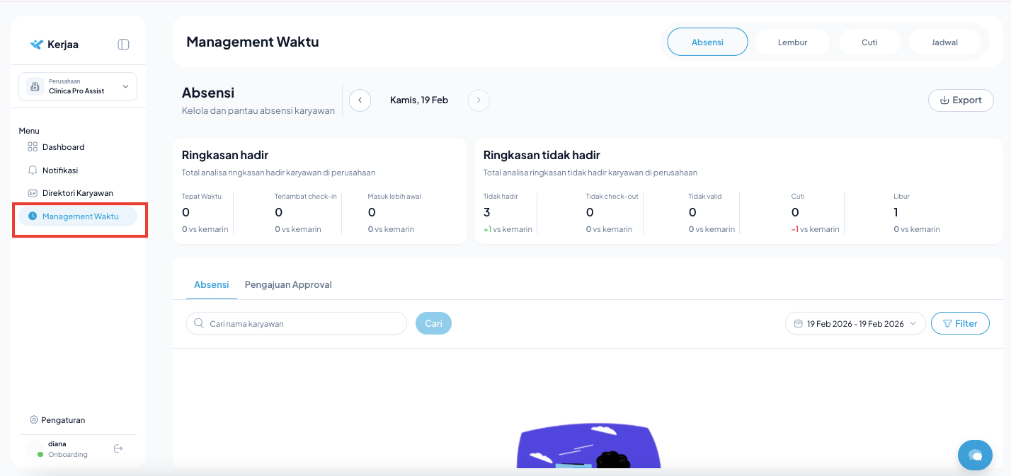 - Masuk ke menu Management Waktu.