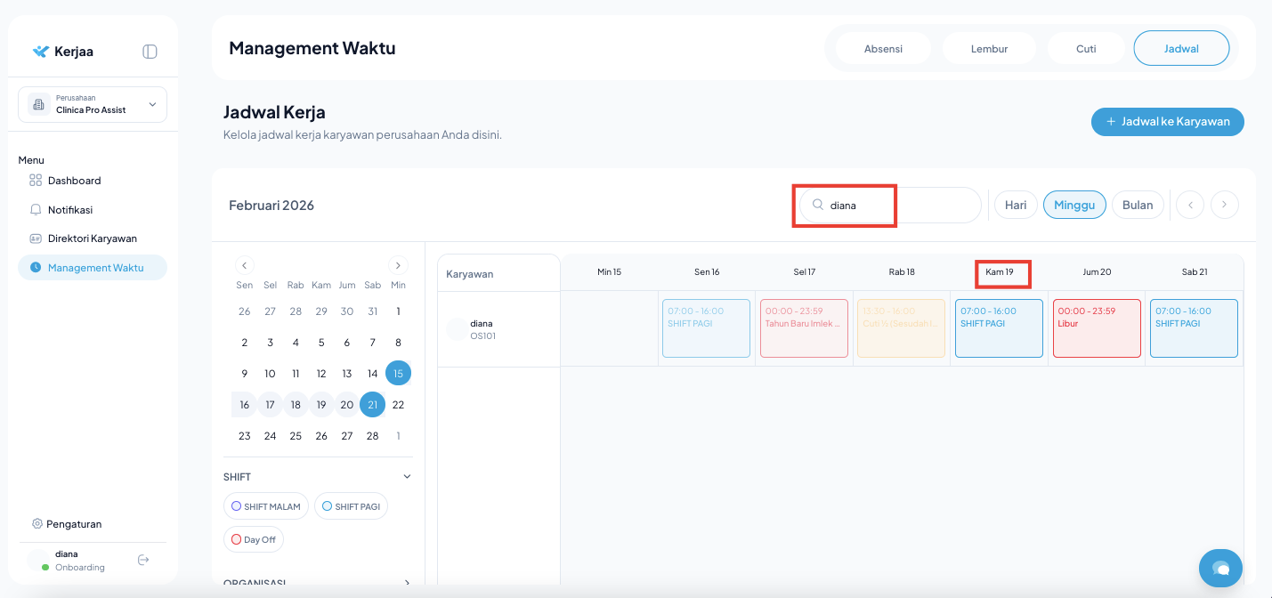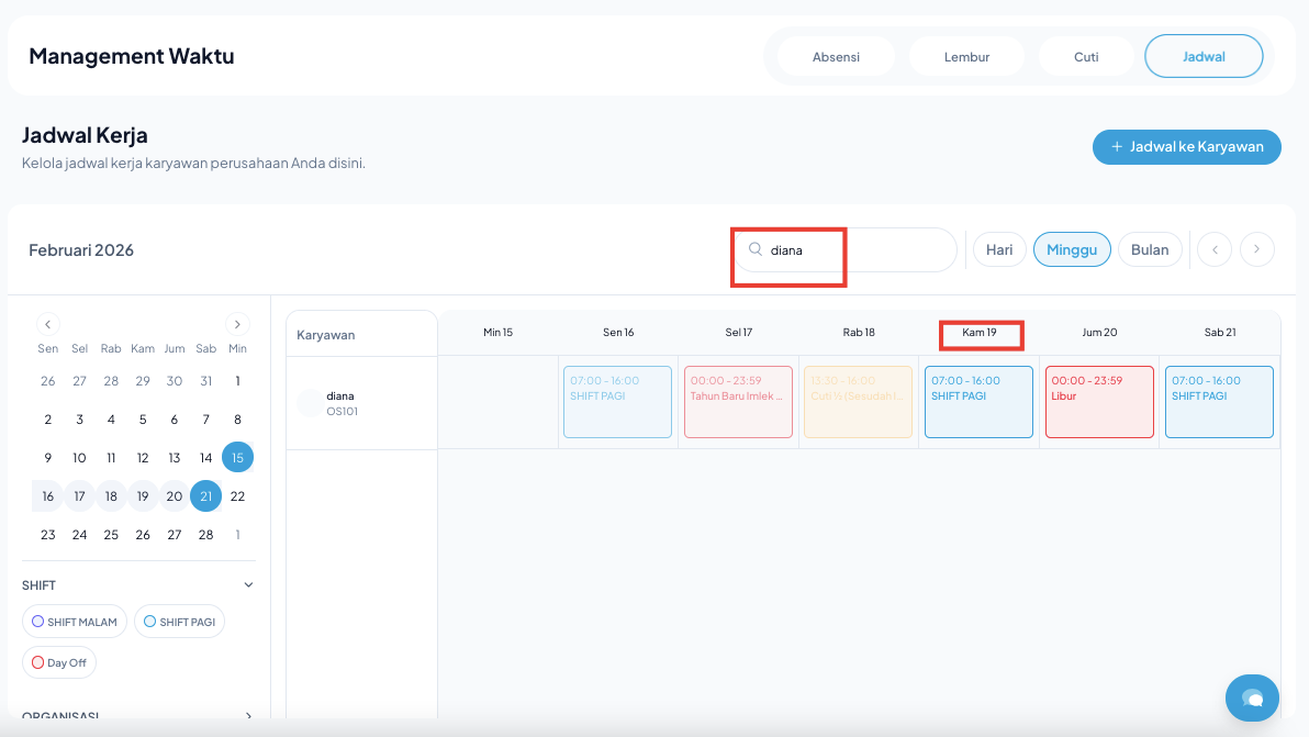 - Klik Kotak Jadwal Shift pada tanggal tersebut.