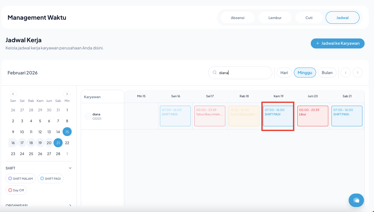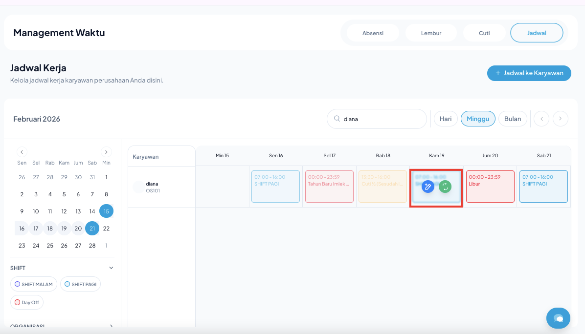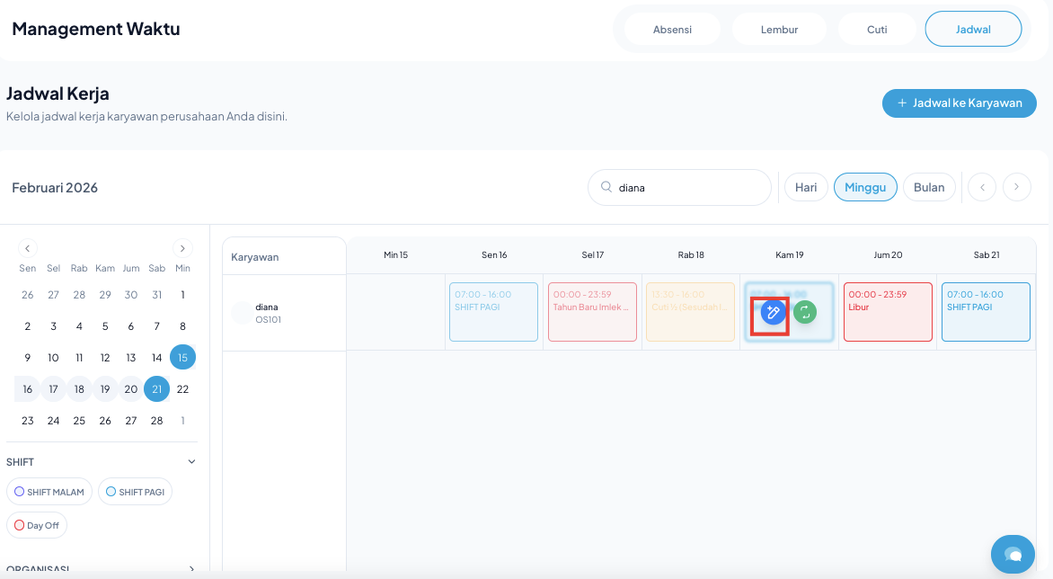 - Klik pada kotak jadwal shift karyawan pada tanggal tersebut.
