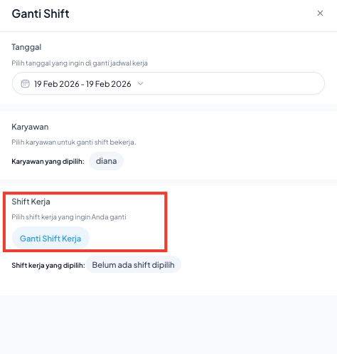 Ikuti langkah-langkah berikut untuk melakukan pergantian shift karyawan: