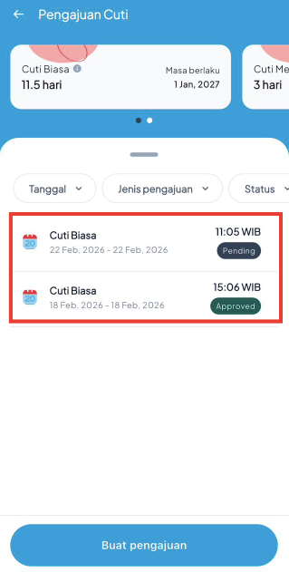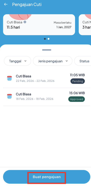 Klik Buat Pengajuan untuk mengajukan jadwal cuti