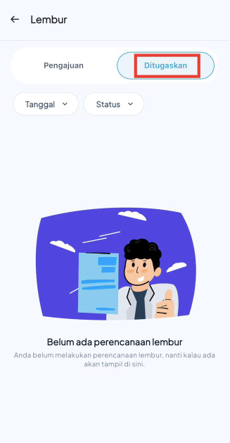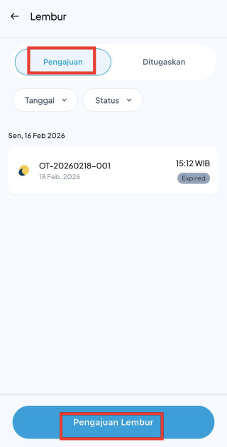 - Pada tab Pengajuan, klik Pengajuan Lembur