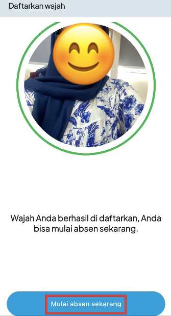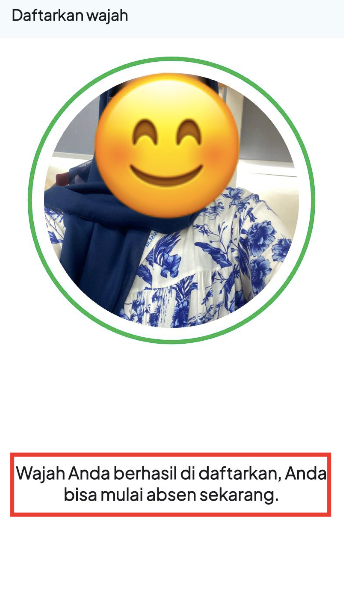 - Apabila indikator lingkaran berubah menjadi Warna Hijau, maka pendaftaran wajah telah berhasil.