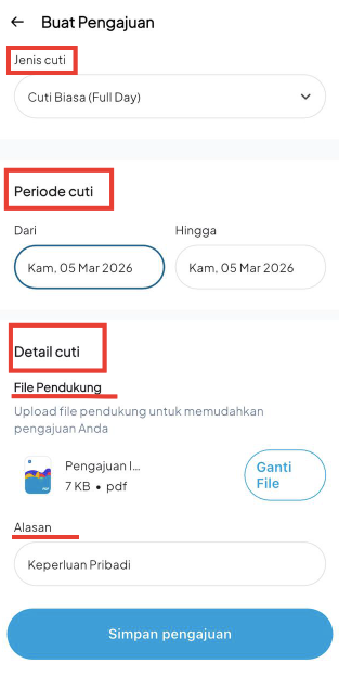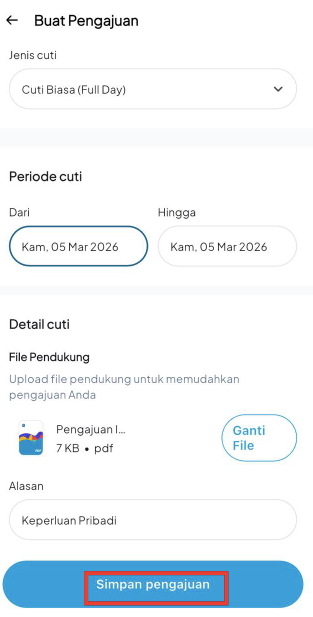 Klik Simpan Pengajuan untuk menyimpan dan mengajukan cuti