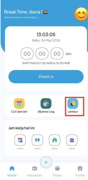 13. Klik Lembur