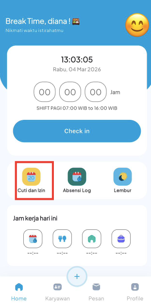 11. Klik Cuti dan Izin