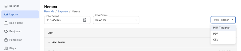 - Pilih jenis laporan yang ingin diunduh