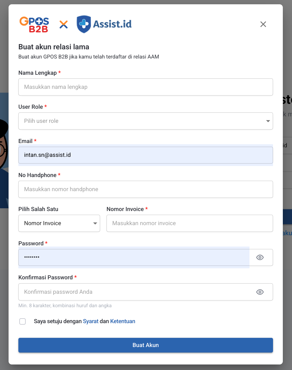 - Jika Anda belum memiliki akun GPOS B2B klik Buat Akun
