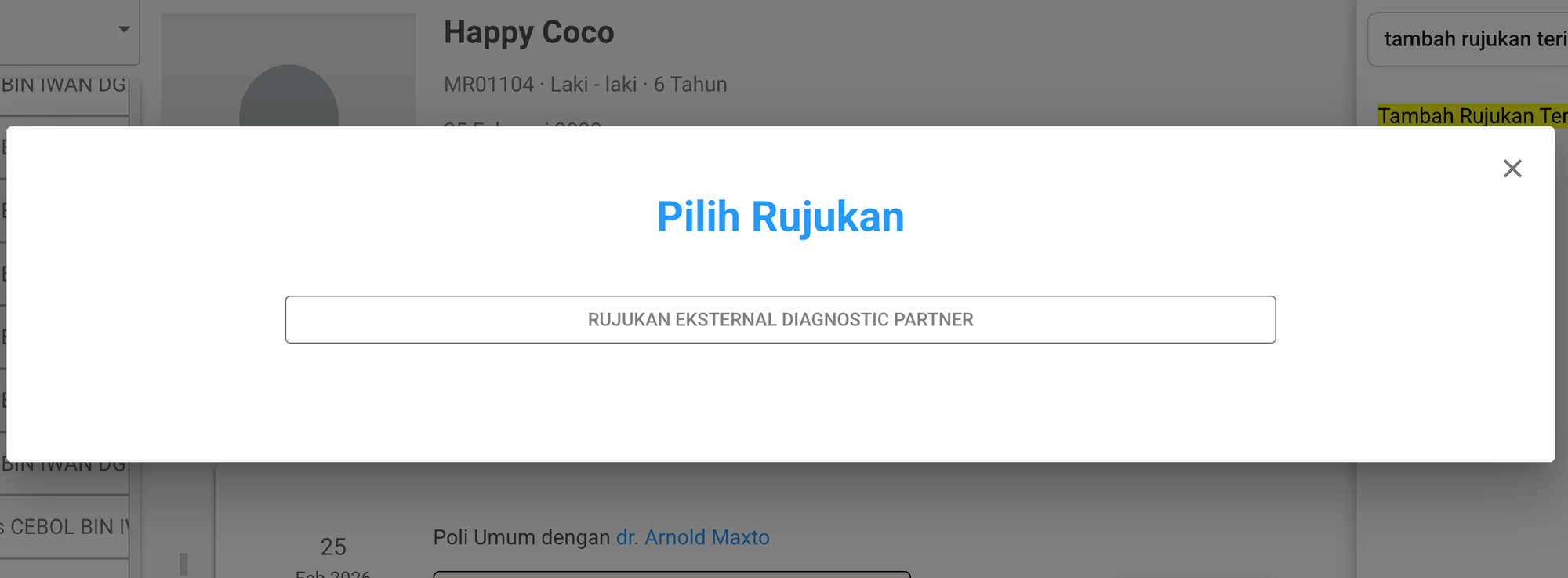 - Selanjutnya untuk data Rujukan Eskternal Diagnostic Partner akan tercatat pada EMR pasien