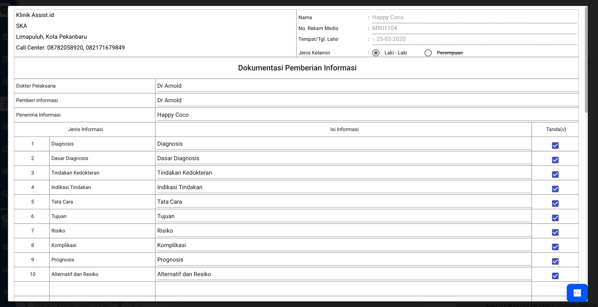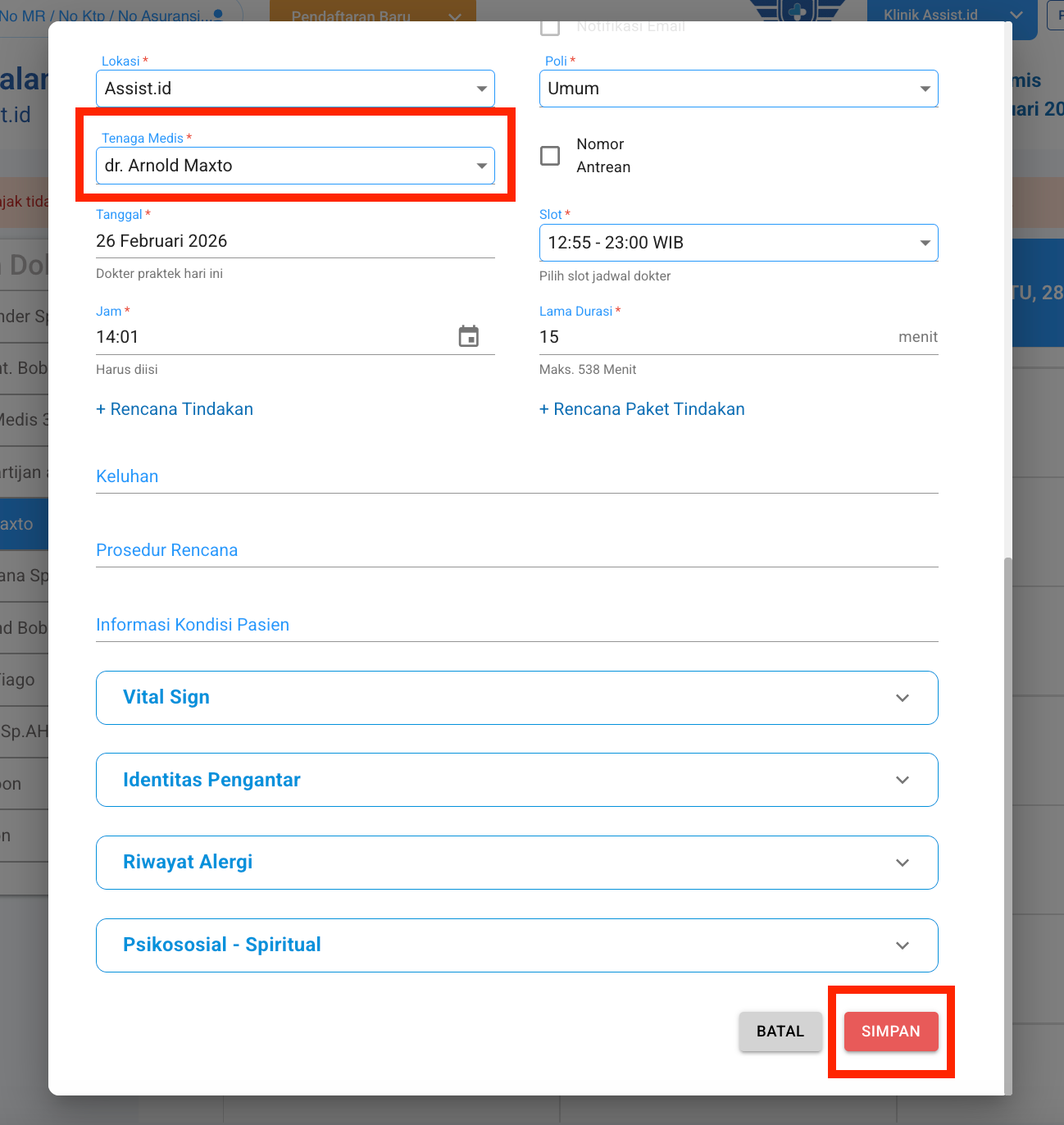 - Dokter perujuk ini akan otomatis terisi oleh dokter yang dipilih diawal dan tidak bisa diubah
