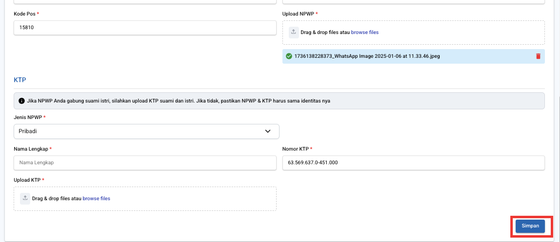 3. Lengkapi Datanya dan Klik Simpan