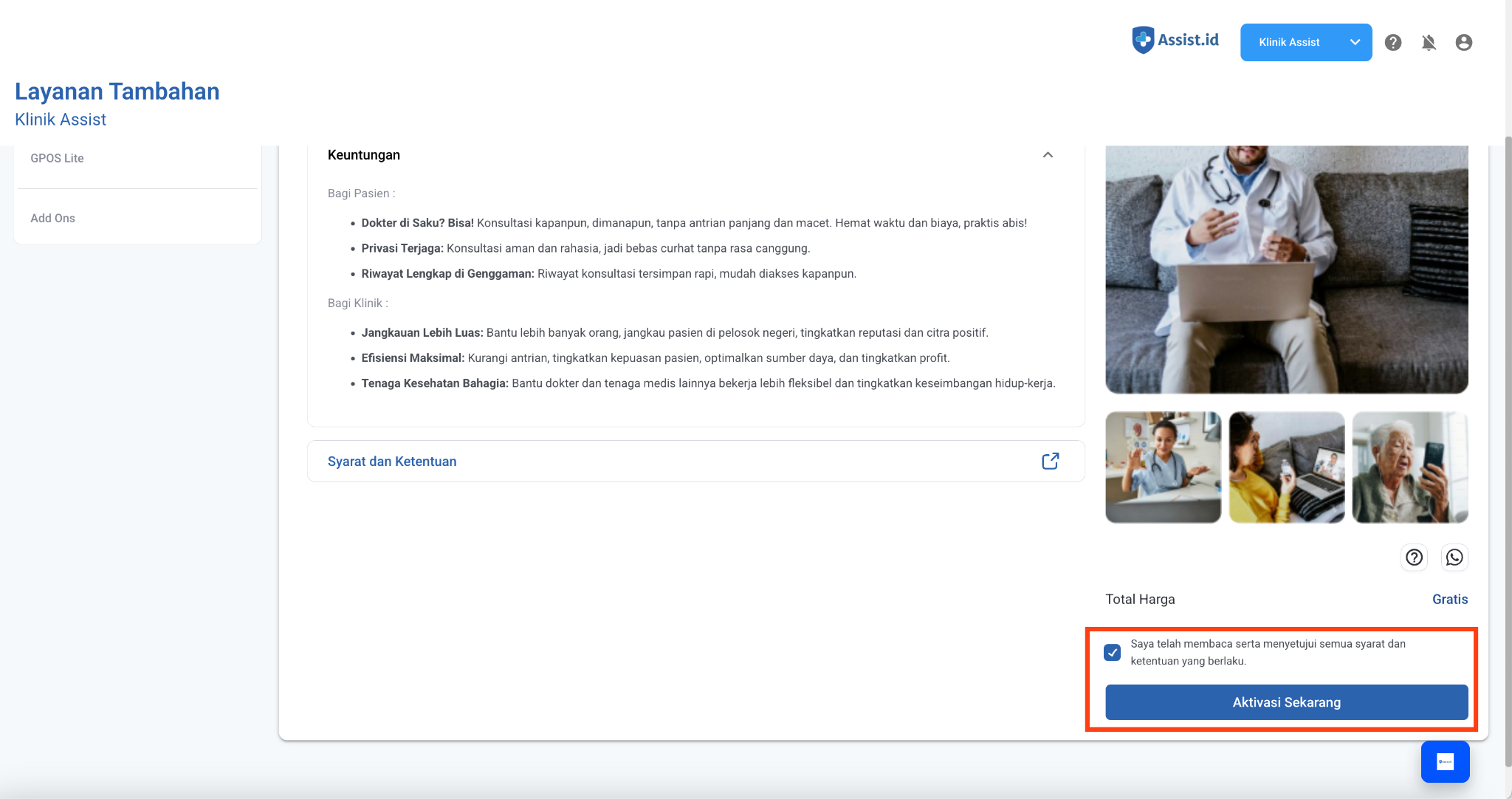 - Apabila pengajuan disetujui, maka layanan Assist Diagnostic Partner sudah dapat digunakan.