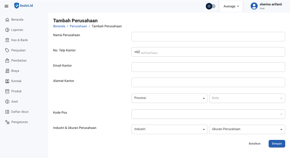 Pengguna diminta untuk mengisi informasi umum perusahaan seperti pada tampilan yang tersedia.