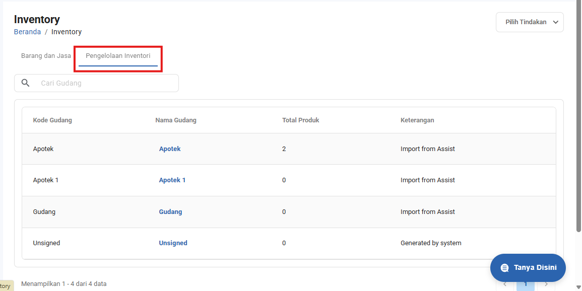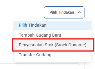 - Jika memiliki lebih dari satu gudang, lakukan penyesuaian menggunakan fitur Transfer Gudang untuk memindahkan stok ke lokasi yang sesuai