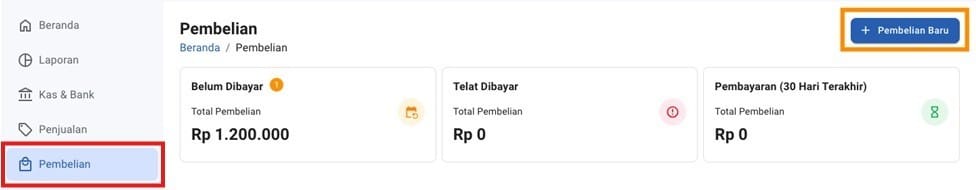 - Masuk ke menu Pembelian → klik + Pembelian Baru