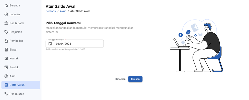 Sebelum mulai mencatat transaksi pada sistem akuntansi, langkah penting yang perlu dilakukan adalah menentukan saldo awal pada setiap akun. Saldo awal ini menjadi titik awal pencatatan yang akan memastikan seluruh data keuangan di sistem sesuai dengan kondisi sebenarnya.