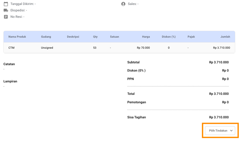- Pada halaman detail penjualan, scroll ke bawah