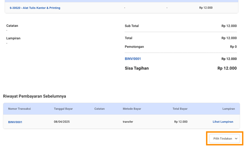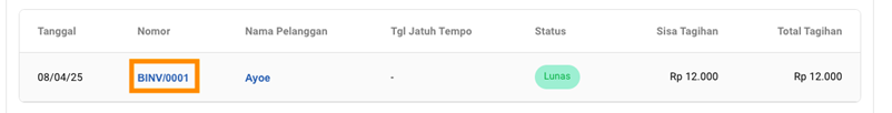 - Klik nomor transaksi biaya yang ingin dibatalkan