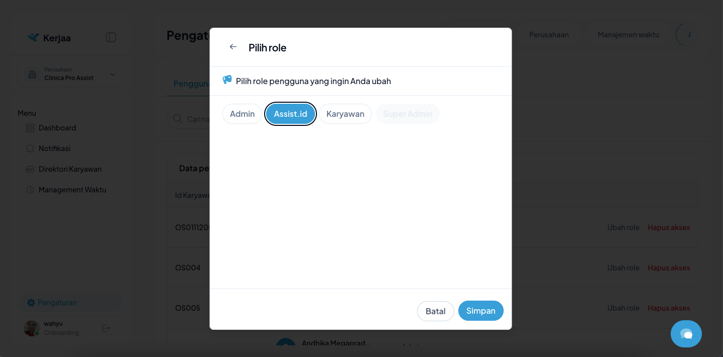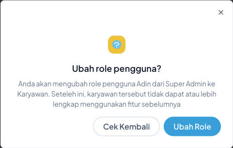 Penting: Menambah Role saja tidak cukup. Anda harus menetapkan Role tersebut ke akun karyawan yang bersangkutan agar perubahan dapat digunakan.