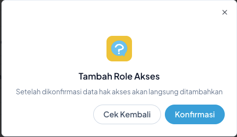 - Jika sudah memilih Akses yang dibutuhkan. Klik Simpan dan lakukan Konfirmasi.